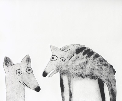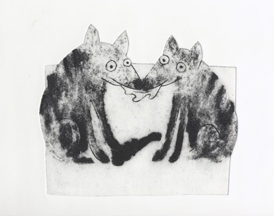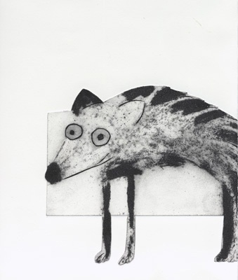 Through the field trip away, I discovered a local artist called Alice Leach. Based in Totnes, she experiments with a number of different media and techniques to create her pieces of work. I was first attracted to her sketchy prints that featured a number of different hyenas. I thought these were really cute and instantly appealed to me. For these pieces she used the printmaking process collography, which after some research looks like a really interesting method to use and something I'd be interested to experiment with in the future.